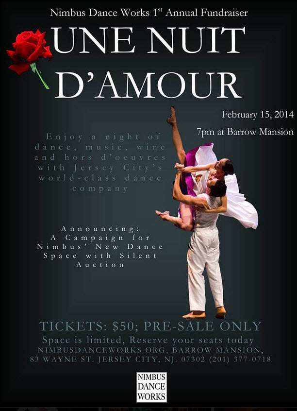 Nimbus Dance Works invites guests to join the company at Une Nuit D’Amour, a lively evening of dance, music, wine and hors d’oeuvres, all to raise funds for Nimbus’s new location.