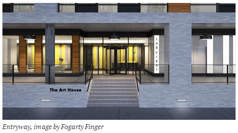 A tipster submitted renderings of Jersey City’s Art House, located at 148 First Street, in the Powerhouse Arts District. The Shuster Group is developing, and Fogarty Finger is the project’s architect.