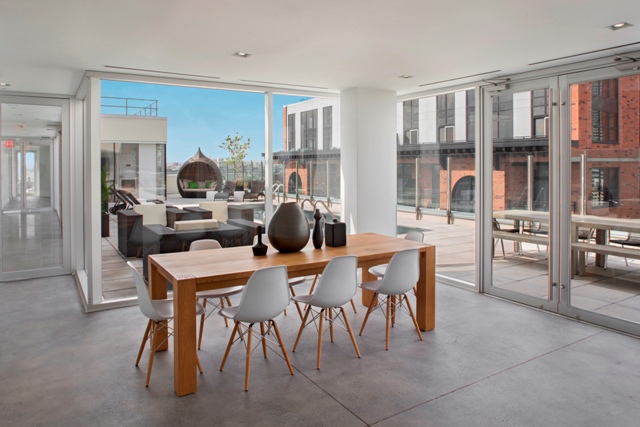 Located at 148 First Street, The Art House was designed by Fogarty Finger Architects and LWDMR & Associates to integrate modern design into the historic and arts-inspired fabric of the building’s Powerhouse Arts District location. The building’s welcoming entrance leads to a contemporary, intimate lobby with a doorman to greet residents and guests. Hotel-like amenities include a rooftop pool and sundeck offering dramatic views of the Manhattan skyline, a lounge, state-of-the-art fitness center, yoga room, kids’ room, party room and a bike storage room.