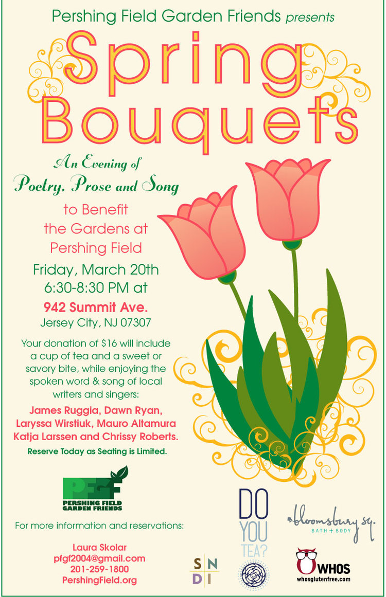 Pershing Field Garden Friends invite you to celebrate the first day of spring, Friday March 20th from 6:30 to 8:30, at 942 Summit Ave in the Jersey City Heights. This great little shop features fine teas from Do You Tea?, gluten free baked goods from WHOS Gluten Free Bakery and garden-fresh natural skincare products from Bloomsbury Sq.