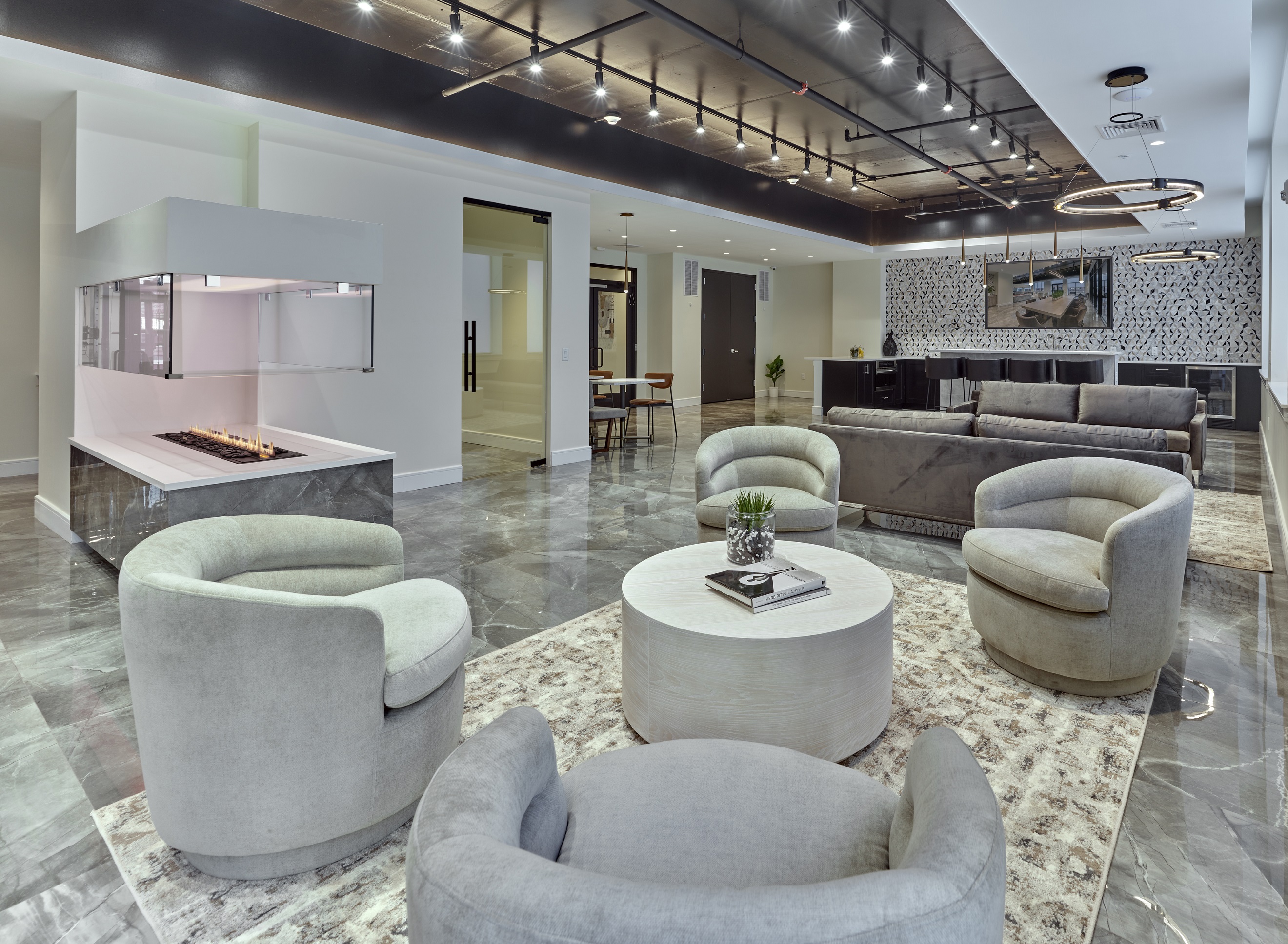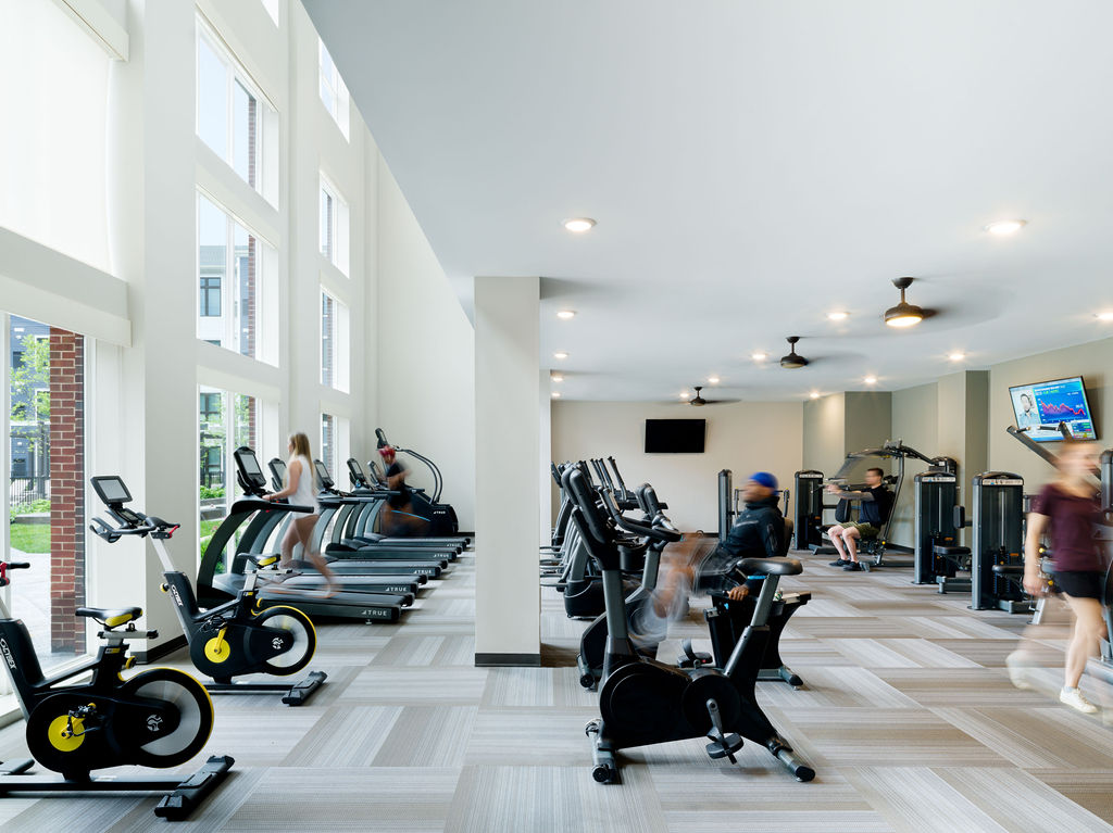 Clarus Glen Ridge falls under developer JMF Properties’ “Clarus” brand which promotes resident health and wellness. The community’s generous amenity package starts with a cutting-edge wellness center where state-of-the-art exercise equipment with touch consoles, cycling, TRX® suspension training, a heavy bag, kettlebells and more are available. A separate personal training studio gives residents access to Echelon® Reflect Touch touchscreens with both live streaming and on-demand training classes. Additional amenities include a central lobby and lounge with hospitality-inspired finishes and a two-sided fireplace, reading lounge, parlor with gas fireplace and wet bar, business center, theatre room, and billiards room with vintage billiards table.