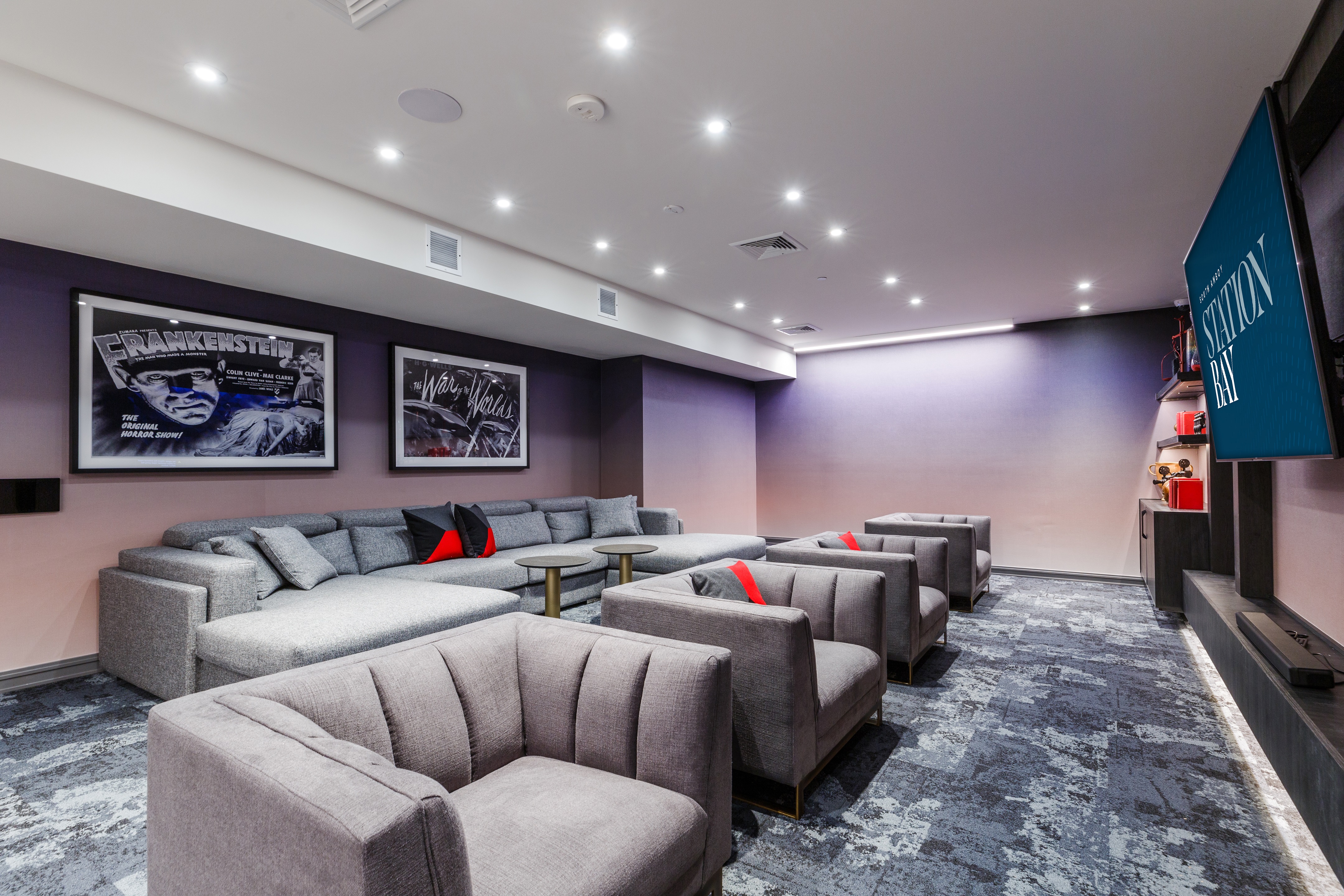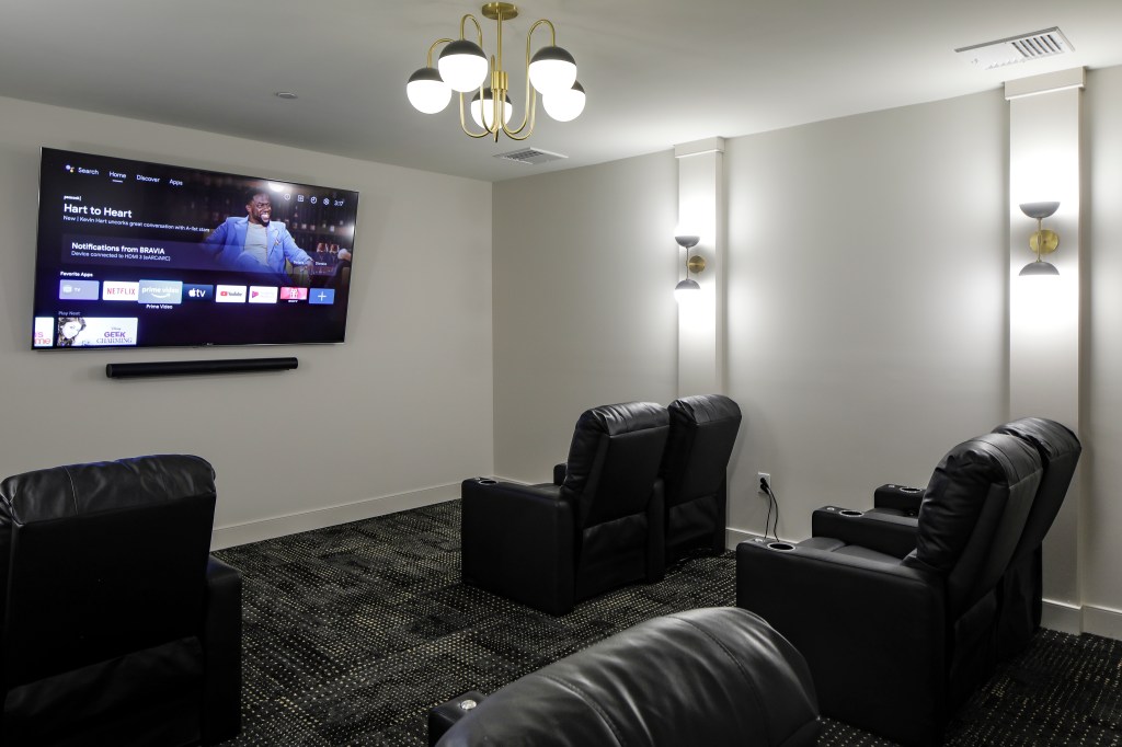 Movie posters adorn the walls of the beautiful screening room at Station Bay, and entertaining diversions such as massage chairs and a fully-stocked game room are just outside, but on Super Bowl Sunday, there is no better place to watch the big game. The community of 291 waterfront apartments in South Amboy was designed with experiences like this in mind. Residents can gather in the screening room, main lobby lounge, and multiple entertainment lounges located throughout the community, representing just a few of the many amenities developer BNE Real Estate Group integrated into its design.