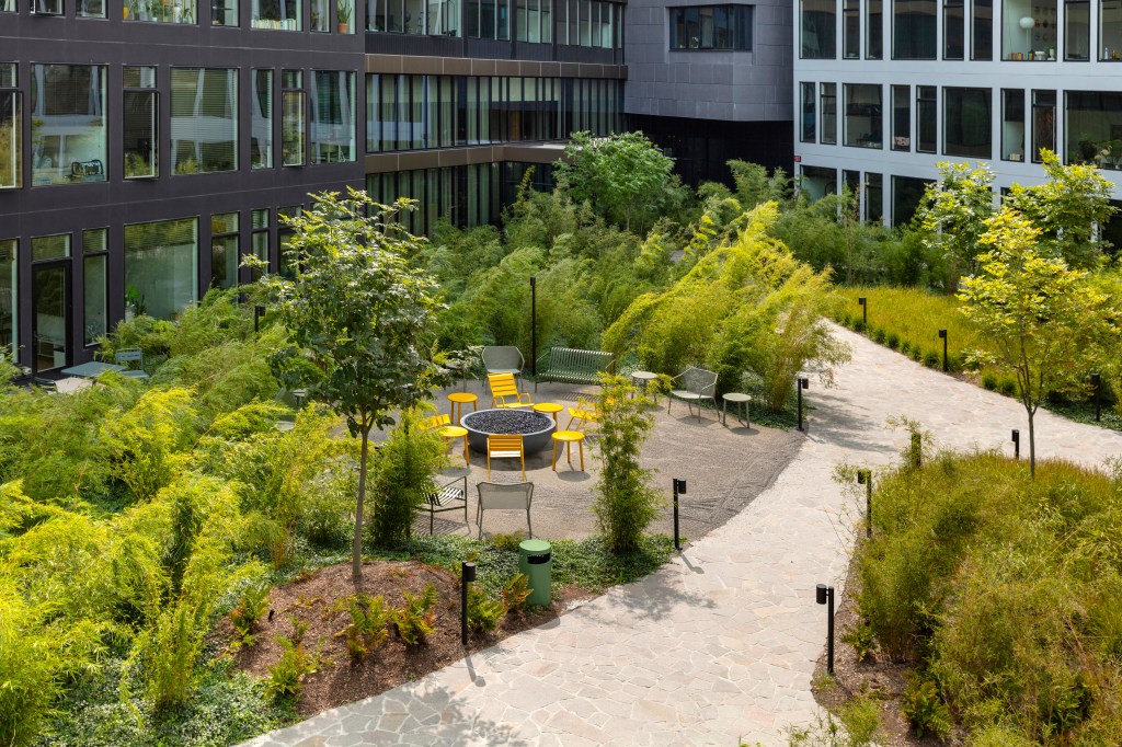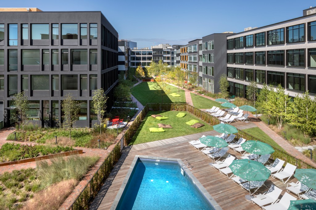 Innovative apartment brand Urby is the ultimate game-changer when it comes to living the good life with a side of epic social vibes. For outdoor living, its Harrison Urby property has it all. Collaborating with Amsterdam-based Concrete, famous for its killer designs of citizenM Hotels worldwide, and talented Belgian landscape architect, Bureau Bas Smets, they’ve created a masterpiece with walkways, lush lawns, and planted areas that include a meandering bluestone path through an Aspen Grove. There’s also a community garden with individual veggie plots, a heated swimming pool and patio for ultimate relaxation, fire pits to get cozy around, grills for BBQ action, and lounge seating, not to mention lawn games. It’s also pet friendly, highlighted by Urby’s Woofgarden – a pup paradise for some serious playtime. Need to get out of the sun? They’ve got a rentable chef’s kitchen used to host food events, onsite café, and a bistro, not to mention a full-court indoor basketball court for some slam-dunk action and 13,000 square feet of indoor fitness space. Light-filled studios, one- and two-bedroom residences from $2,196