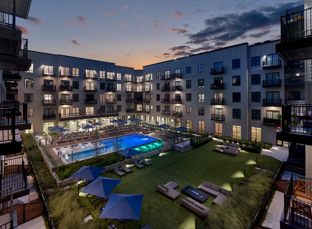 “We made the decision that the building design we had wouldn’t meet the market,” said Peter Cocoziello, the firm’s founder, CEO and president. “The market conditions are really the driving force and with COVID, we decided parking would go underneath and we would create these wonderful open spaces. It’s really a tribute to the design team that you have this kind of open space,” he said, referring to the property’s impressive 45,000 square feet of outdoor green space that includes two landscaped courtyards, a pool, and a sky deck.