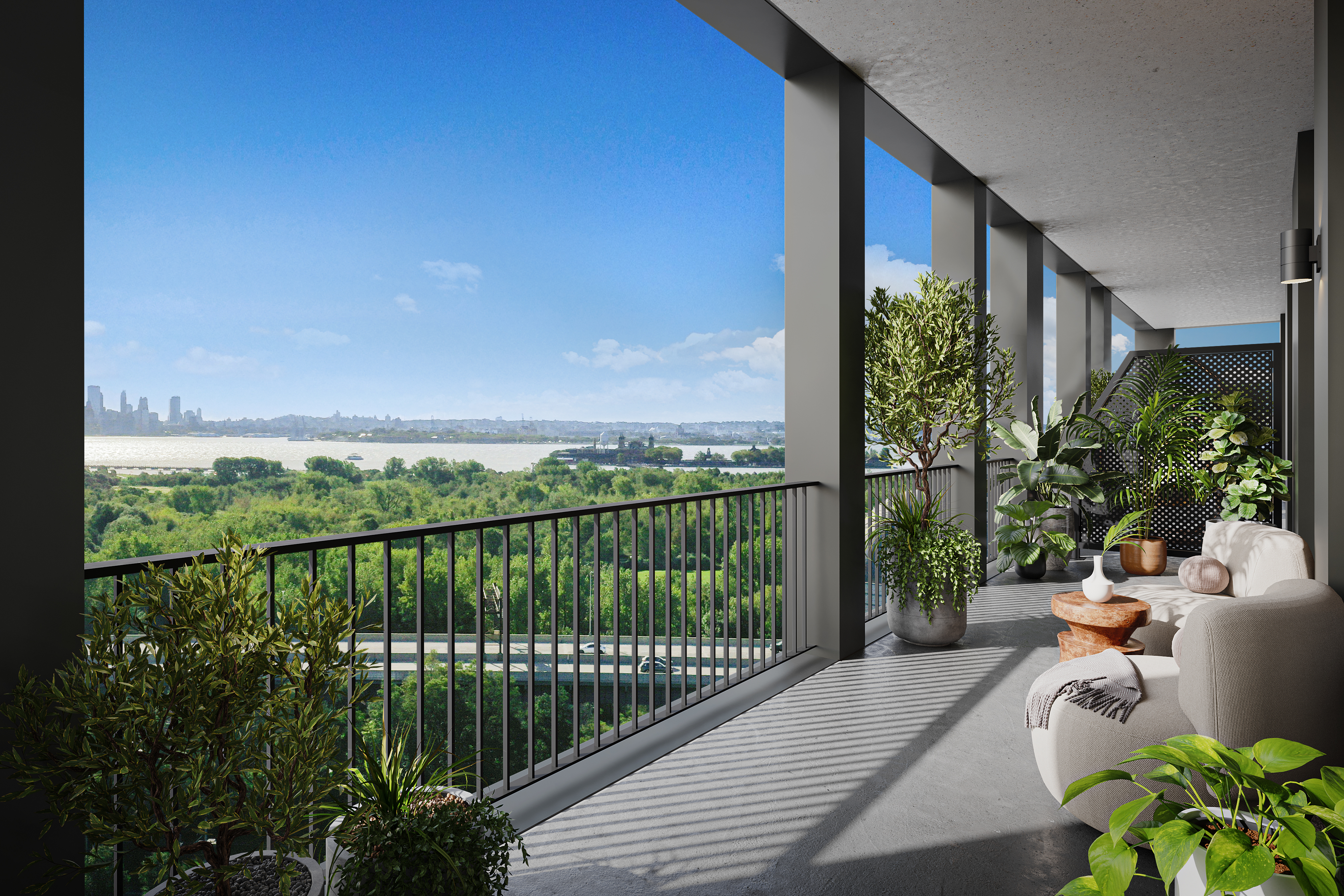 Perched on an elevated site at 270 Johnston Avenue, the 24-story building – the tallest in the neighborhood – opens with well-appointed studios, one-, two- and three-bedroom residences. Many homes feature private balconies that extend the living spaces outdoors while maximizing uninterrupted views of the Statue of Liberty, Liberty Harbor, Liberty State Park, and the Manhattan skyline.