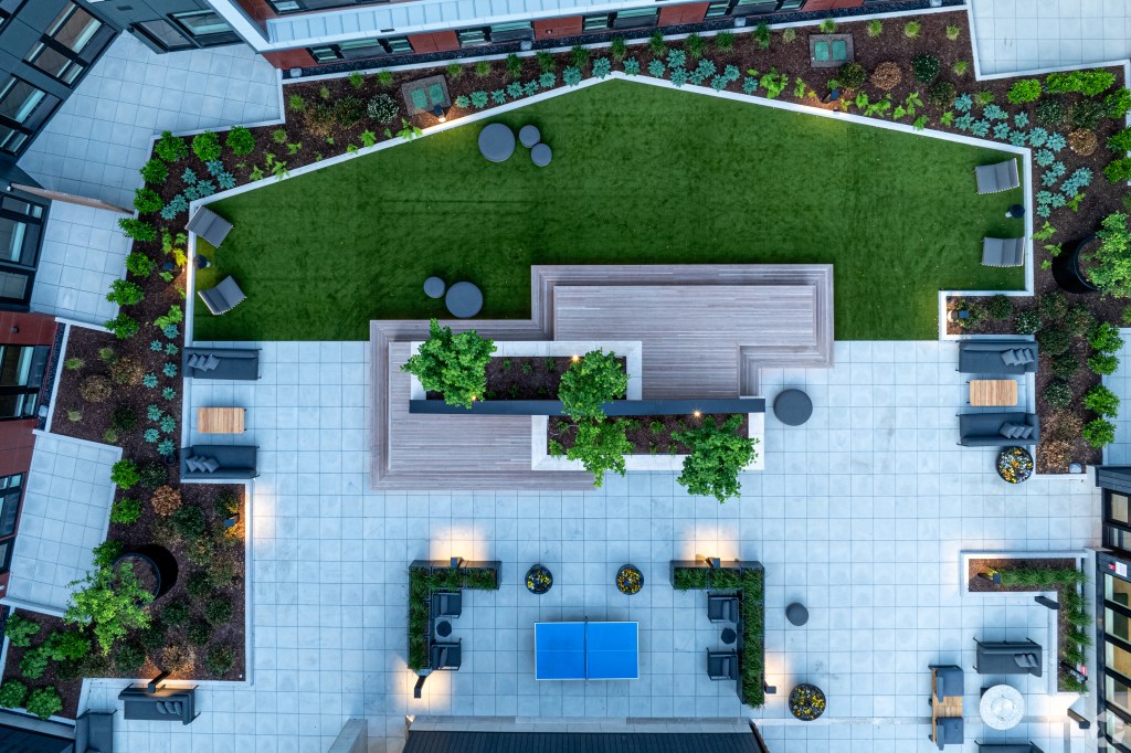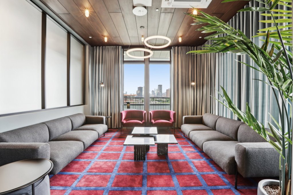 Outside, active and passive courtyards can be found on the building’s second floor and rooftop, where a refreshing pool, sundeck, lounge seating, grilling areas, and fire pits, provide the perfect setting for relaxation and social gatherings with stunning views. For elevated enjoyment, the rooftop Sky Lounge offers a fully-appointed kitchen, rentable private rooms and a terrace offering views of the Manhattan skyline.