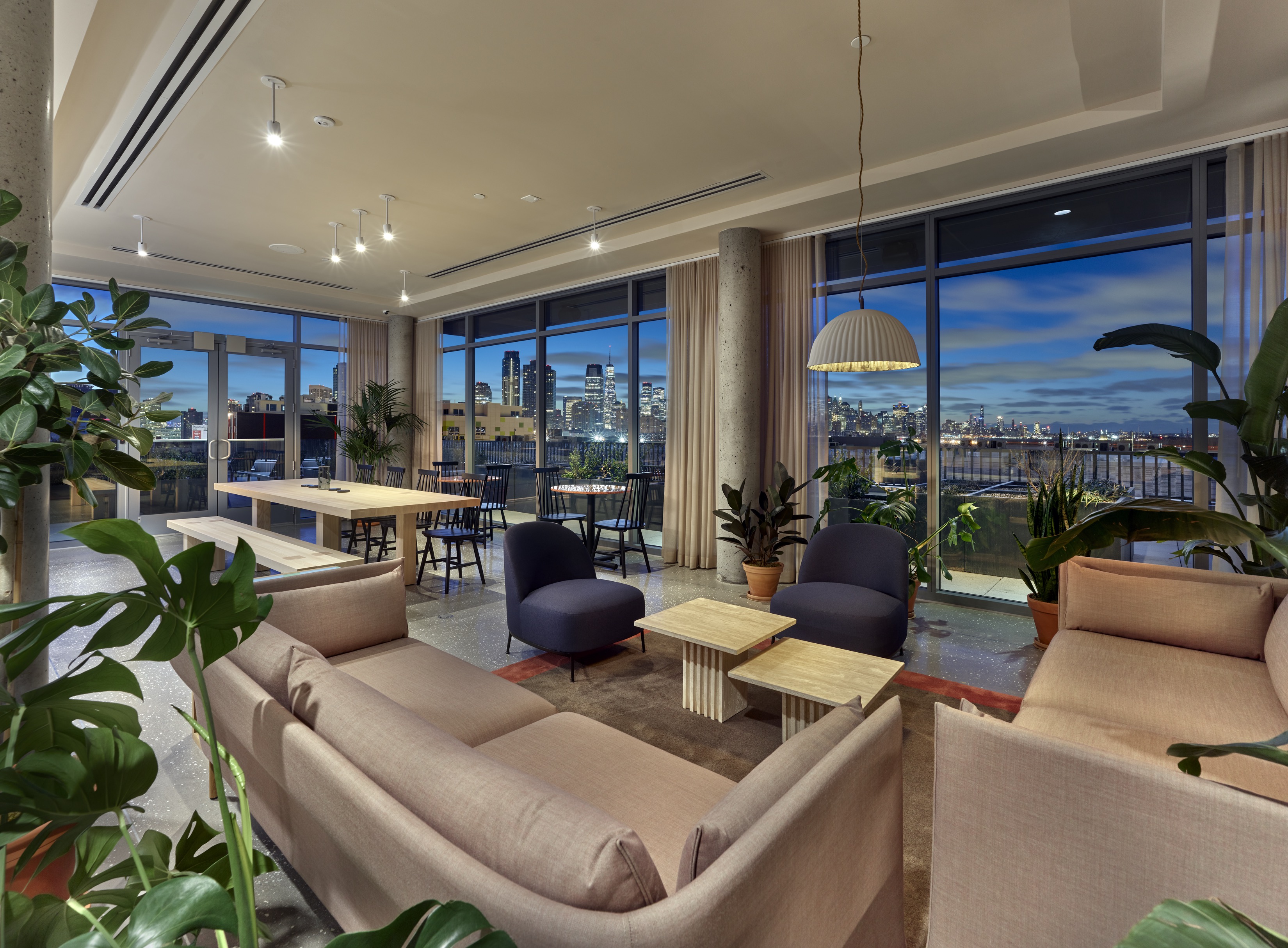 The Hazel boasts an impressive roster of social and recreational offerings, including a rooftop terrace with sparkling pool, BBQ areas, outdoor seating, a mist station, multiple courtyards and a dog run. There’s also a sky lounge with crystal clear New York City skyline views, co-working space, a library with fireplace, state-of-the-art-fitness center and a demonstration kitchen. The full-service resident experience is further enhanced by on-site Concierge, amenity guest suite, TULU lending system, package room, bike storage, electric scooters and garage parking with electric charging stations.