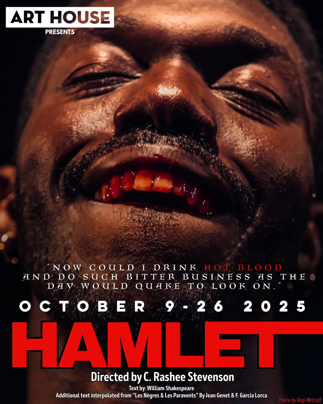 Art House Productions (Executive Artistic Director Meredith Burns) is proud to announce its fall mainstage production of Hamlet, directed by C. Rashee Stevenson, running October 9–26, 2025, at the Art House Theater in Jersey City. This bold reimagining of Shakespeare’s classic tragedy fuses the original text with interpolated language from Les Nègres and Les Paravents by Jean Genet and works by Federico García Lorca—transforming the play into a cosmic crime thriller that plunges deep into grief, identity, and the metaphysical.