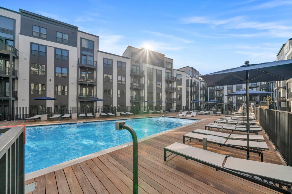 Residents have access to the oversized courtyard, which includes a swimming pool, sundeck, private kitchens, BBQ and dining areas, fire pits, and dog run. Inside, there’s co-working spaces, private conference rooms, entertainment lounges, and café areas provide convenience and connectivity. Additional offerings include a state-of-the-art fitness center, pet spa, concierge service, package and grocery lockers, bike storage, private storage rooms, and garage parking with EV charging stations.