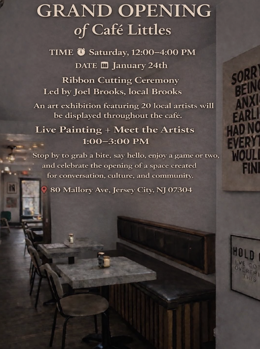 As recently posted by hobokengirl.com, on January 24th, Café Littles at 80 Mallory Avenue will host its grand opening celebration. The event will feature a special ribbon-cutting ceremony led by Joel Brooks, Ward B Jersey City Councilman, music, games, food and drinks.