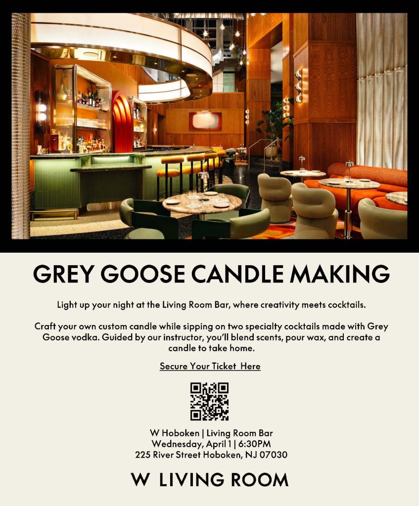 The Living Room Bar at W Hoboken invites guests to an interactive evening of creativity and cocktails with a hands-on candle making experience. Set in the hotel’s stylish lounge, this intimate class blends craft and mixology in a lively social setting. RESERVE YOUR SPOT HERE.